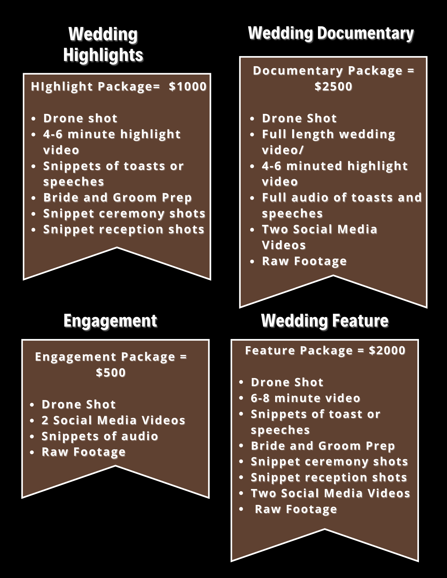 Here is a listing of our packages. As you can see, each of our packages are layout with all the services included.